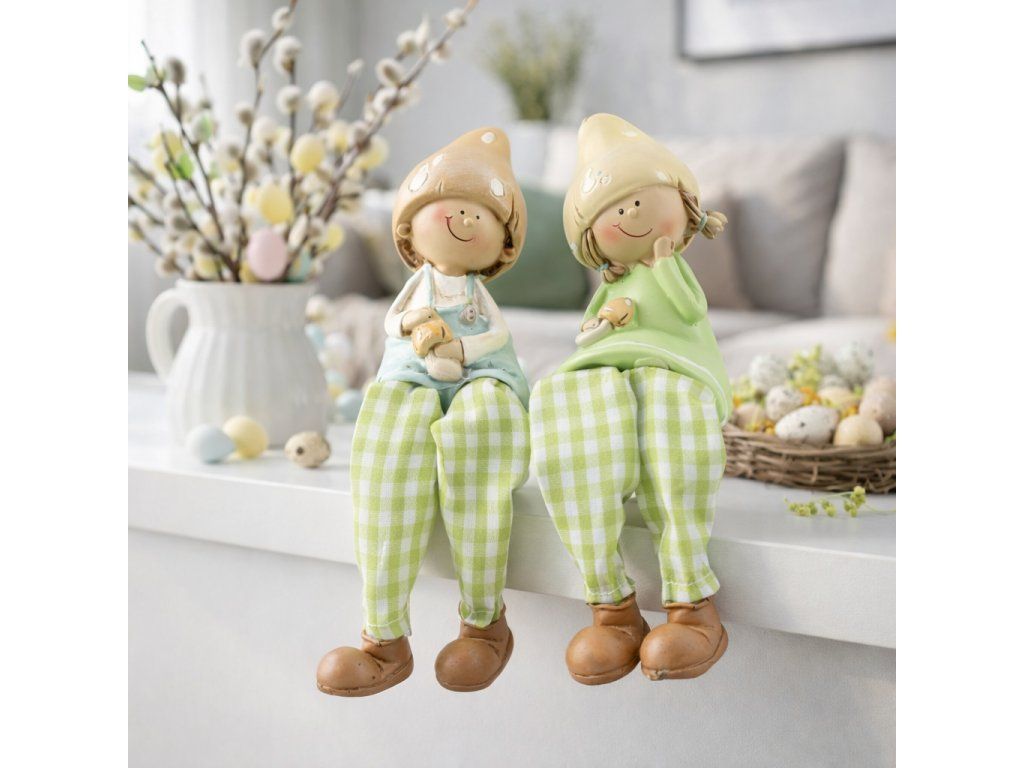 sediaca dekoračná postavička dievčatko a chlapček, 2 varianty