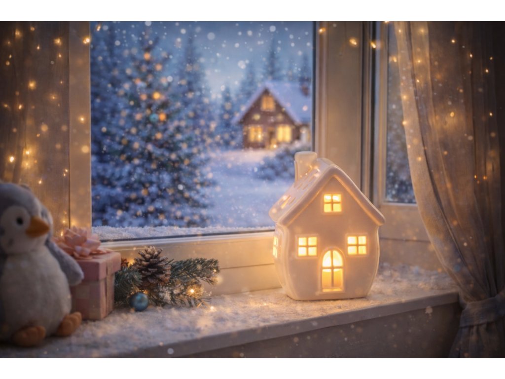 svietiaca LED dekorácia - porcelánový domček