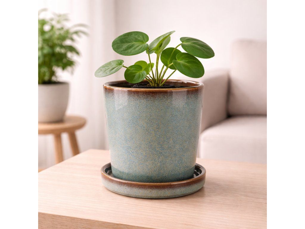 Keramický kvetináč zelený pr.12cm v.11,5cm