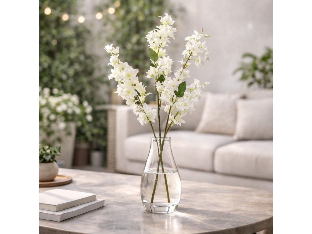 Konár s kvetmi biely 98cm