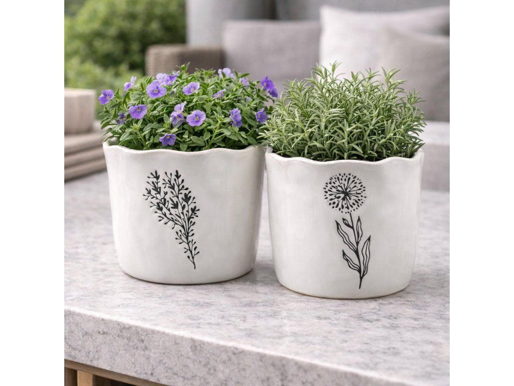 Kvetináč Lúčne kvety biely 12x10cm