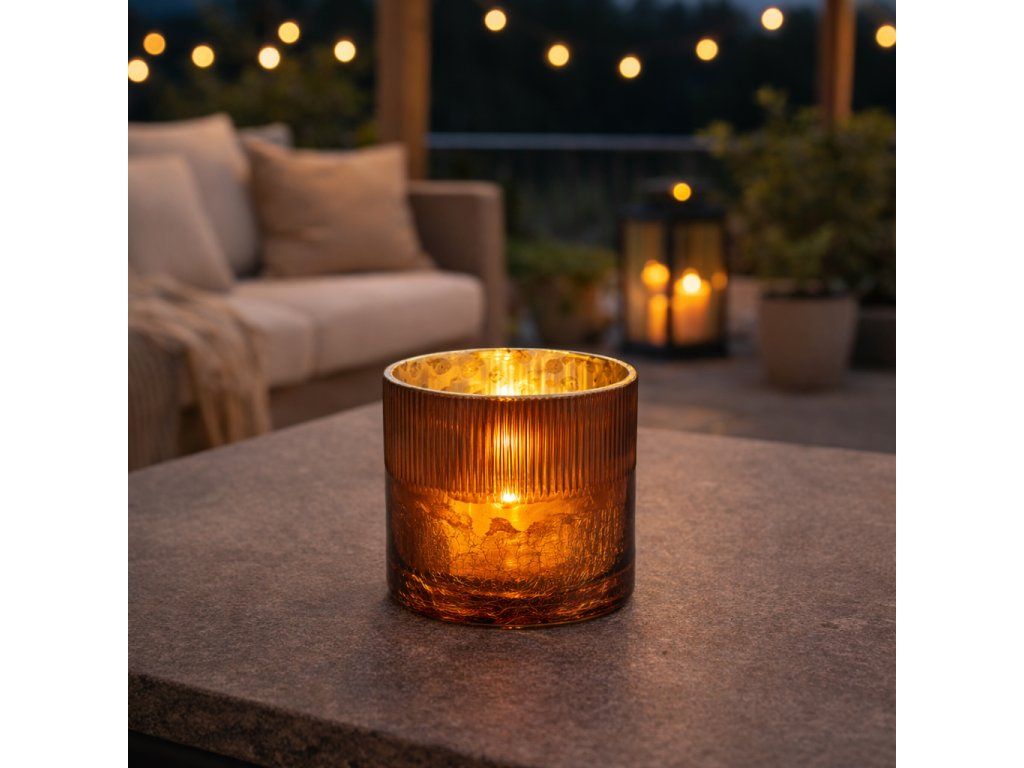 Lucerna sklenená hnedo-zlatá 8×8 cm