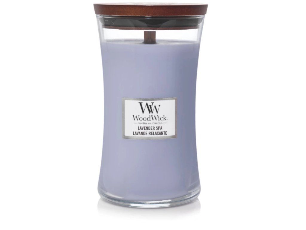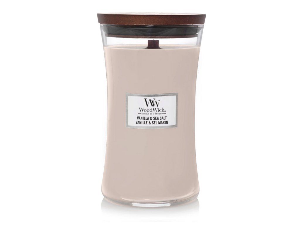 Veľká sviečka Woodwick v elegantnom tvare presýpacích hodín s originálnym dreveným vrchnákom, zútulní Váš domov a naplní ho dlhotrvajúcou vôňou. Patentovaný tvar dreveného knôtu Pluswick vytvára upokojujúci zvuk praskajúceho ohňa. Je vyrobený špeciálnou technológiou, vďaka ktorej zabezpečuje rýchlejšie prevoňanie interiéru. Hladká zmes sójového vosku a najkvalitnejšieho parafínu je zmiešaná s čistými prírodnými esenciami. Veľká sviečka WoodWick Vám ponúka 120 hodín skutočného potešenia z vône.
