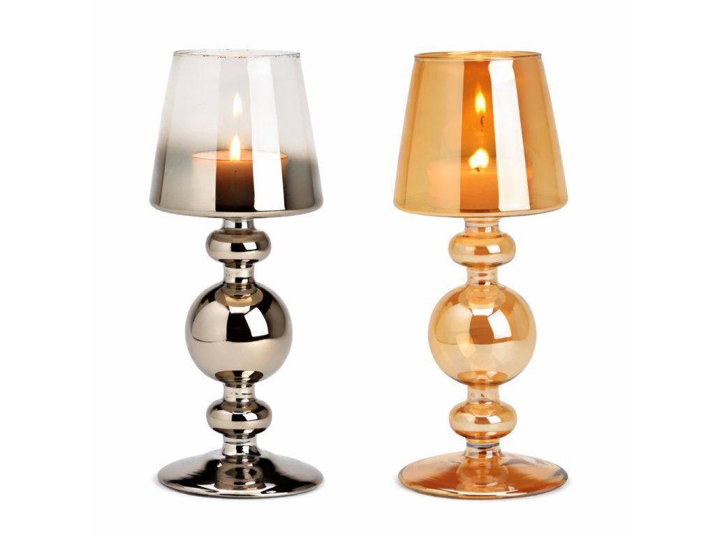 sklenený svietnik s rozmermi 10 × 24 × 10 cm je vhodný ako dekoratívny doplnok do interiéru aj na stolovanie. vďaka svojmu tvaru vytvára príjemnú atmosféru pri sviečke a jednoducho sa kombinuje s rôznymi štýlmi bývania. dostupný v dvoch variantoch.