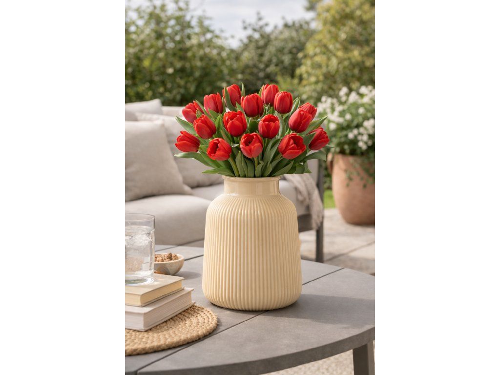 sklenená váza s priemerom 15 cm a výškou 20 cm je vhodná na aranžovanie živých aj sušených kvetov. vďaka svojmu tvaru sa hodí ako dekorácia na stôl, komodu alebo poličku a jednoducho sa kombinuje s rôznymi štýlmi interiéru.